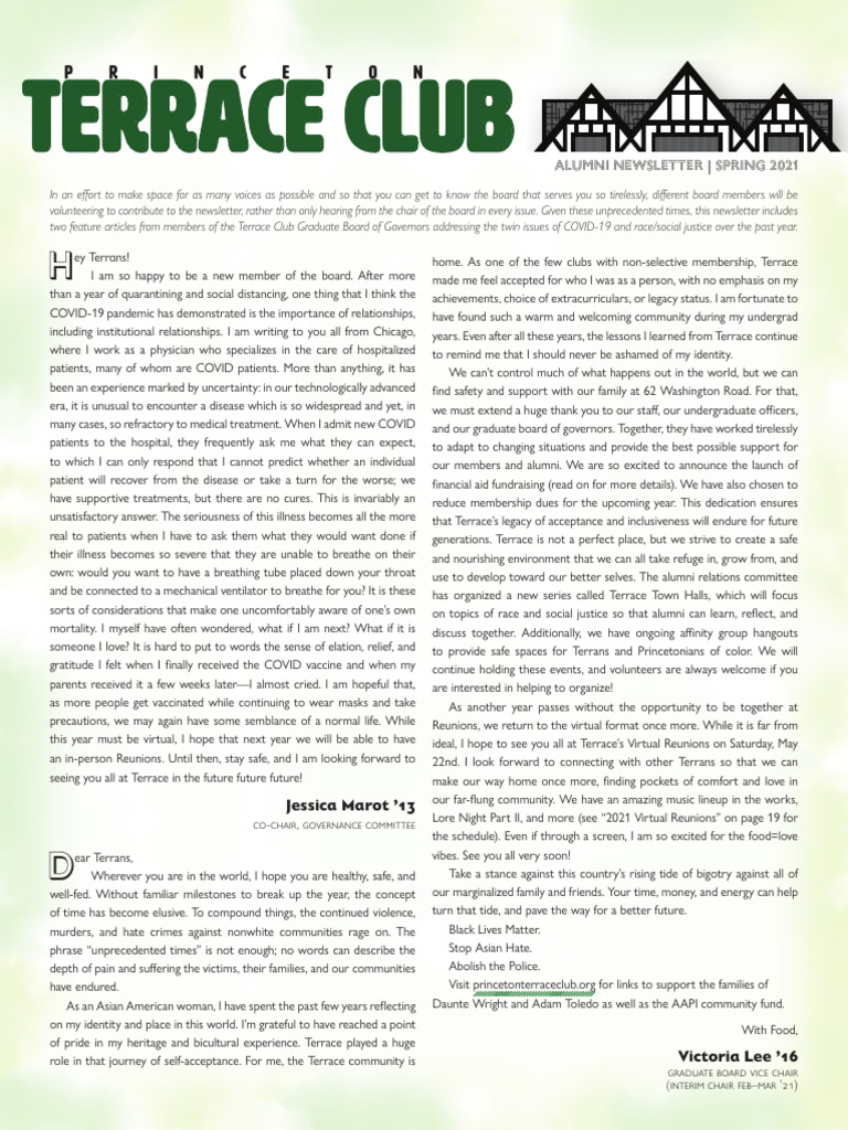 Terrace Club Alumni Newsletter Spring 2021 Pdf Beverages Foods